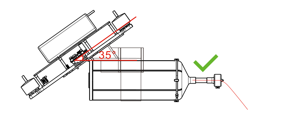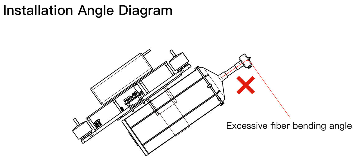 De installatie van glasvezeloptische schijf moet gebaseerd zijn op de kantelhoek van het vliegtuig, de montagebeugel moet worden gereserveerd voor een bepaalde hoek (zoals weergegeven in de figuur). Installatie De bevestigingshoek moet dicht bij de kantelhoek liggen, zodat de uitlaathoek van de glasvezelschijf horizontaal is.
