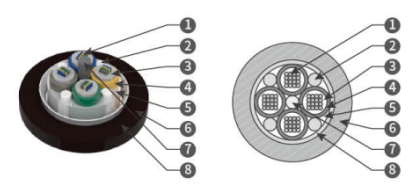 De structuur van de GYDTA optische kabel is om optische vezels met 4, 6, 8 en 12 kernen in een losse buis van materiaal met hoge modulus te steken en de losse buis te vullen met waterdichte verbindingen. Het midden van de kabelkern is een metalen verstevigingskern. Voor sommige kabeladers met een bepaald aantal aders moet een extra laag polyethyleen (PE) buiten de metalen versterkingskern worden geëxtrudeerd. De losse buis en het vultouw zijn rond de centrale verstevigingskern gedraaid om een compacte en ronde kabelkern te vormen. De gaten in de kabelkern zijn opgevuld met waterbestendige vulstoffen. De gecoate aluminiumtape (APL) wordt in de lengterichting omwikkeld en vervolgens wordt een polyethyleen omhulsel geëxtrudeerd om de kabel te vormen.